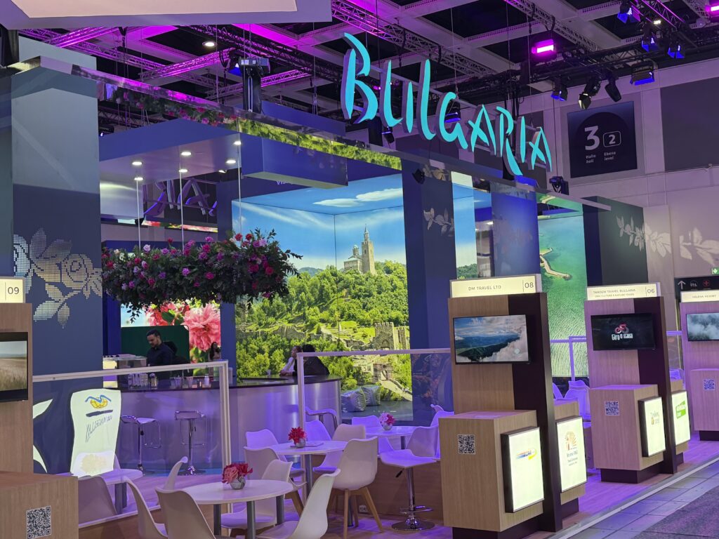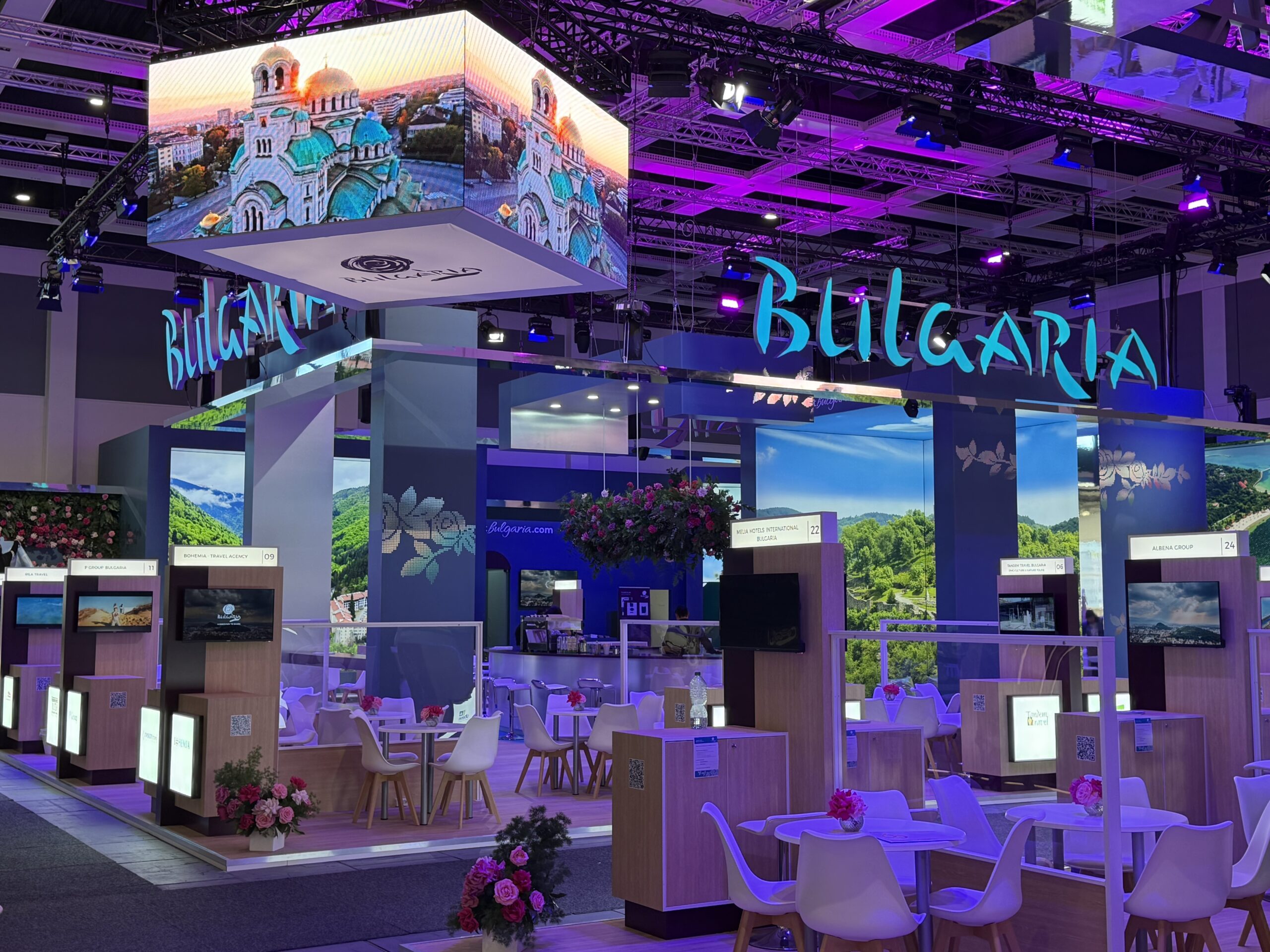 България се представя с впечатляващ национален щанд с площ от 650 кв. м. Дизайнът съчетава модерна визия и дигитални елементи, които пресъздават богатството на българската природа и културно-историческо наследство. Пространството е организирано в тематични зони за бизнес срещи, презентации и интерактивни изживявания.