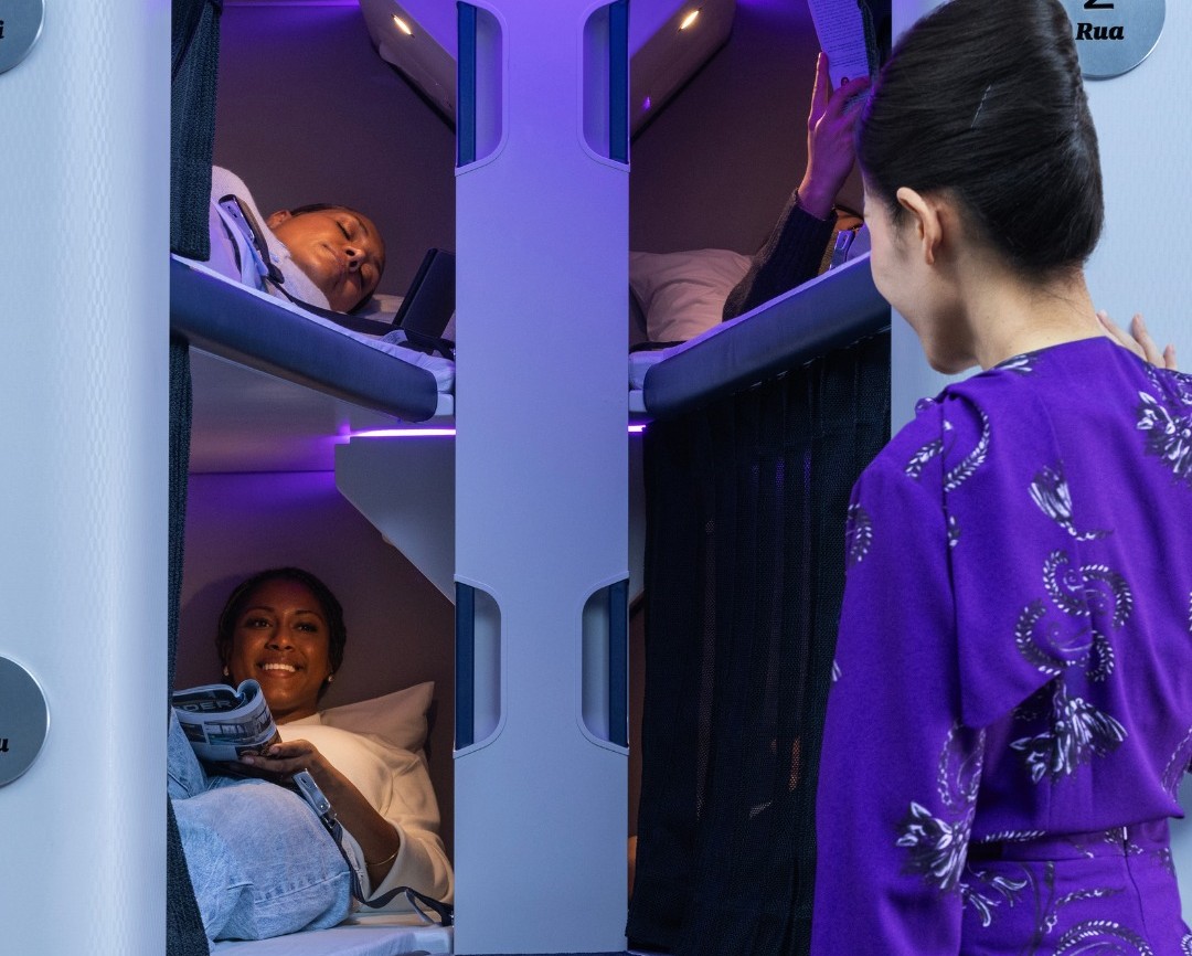 Skynest представлява първата в света концепция за легнали капсули в икономична и премиум икономична класа. Шест индивидуални капсули, разположени в двуетажна конфигурация между двете кабини, ще предоставят възможност за четиричасова почивка по време на полет.