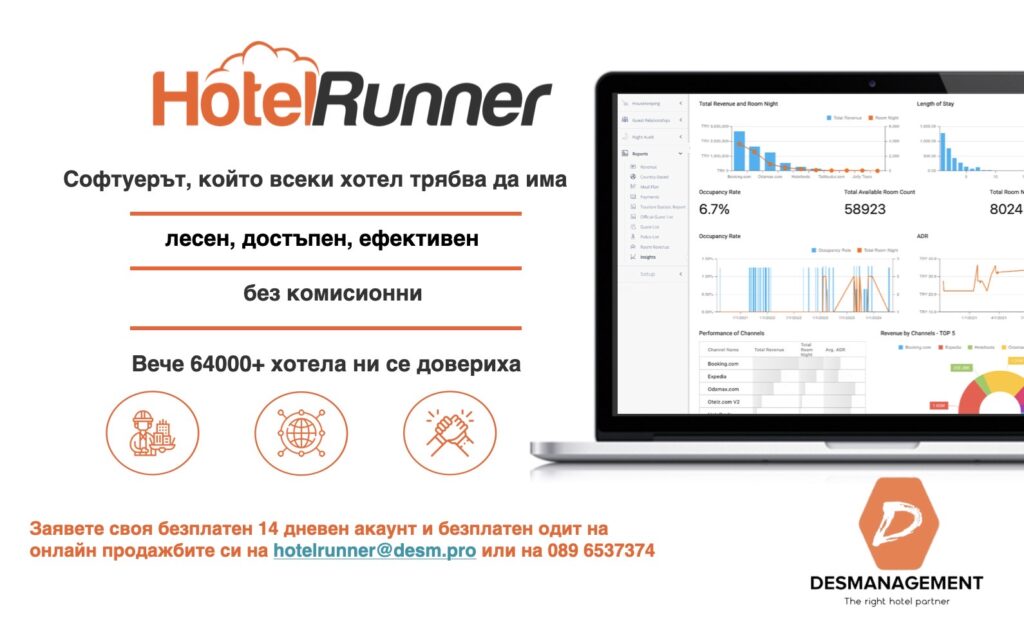 От 2020 г. DES Management е официален представител на HotelRunner за България, Северна Македония и Румъния.