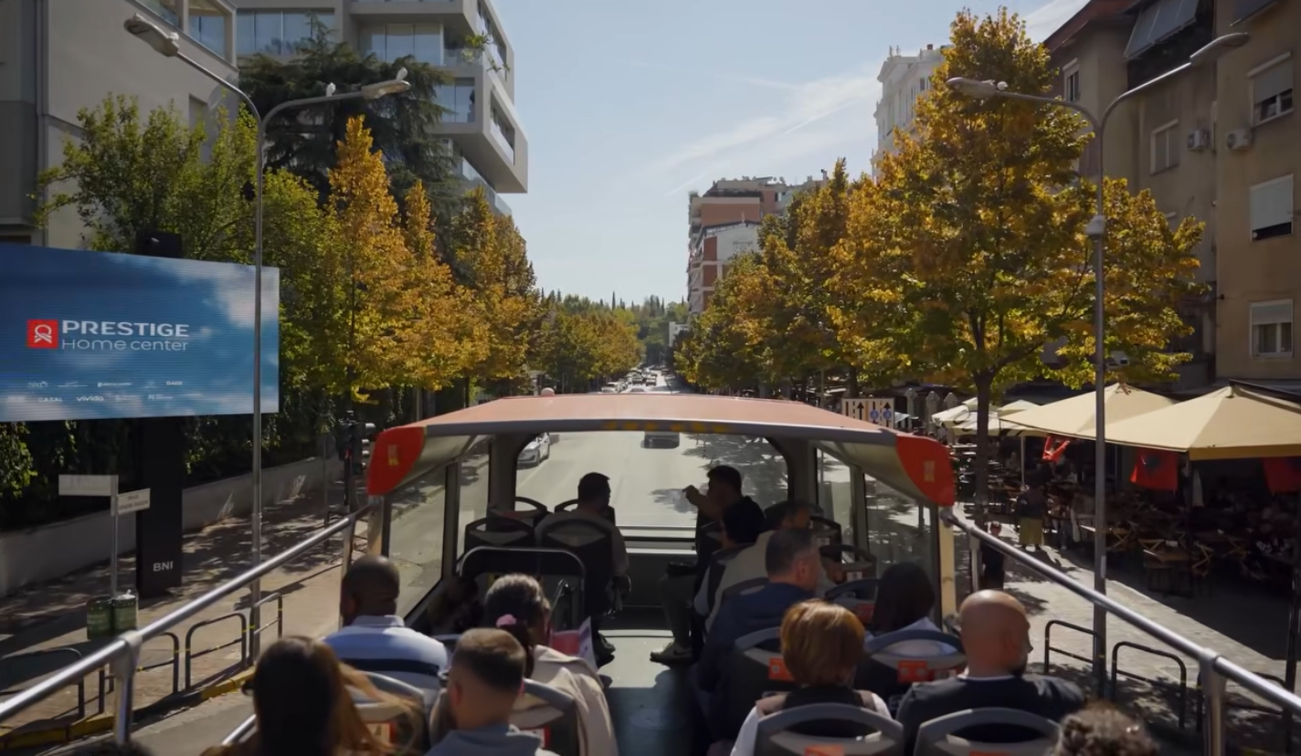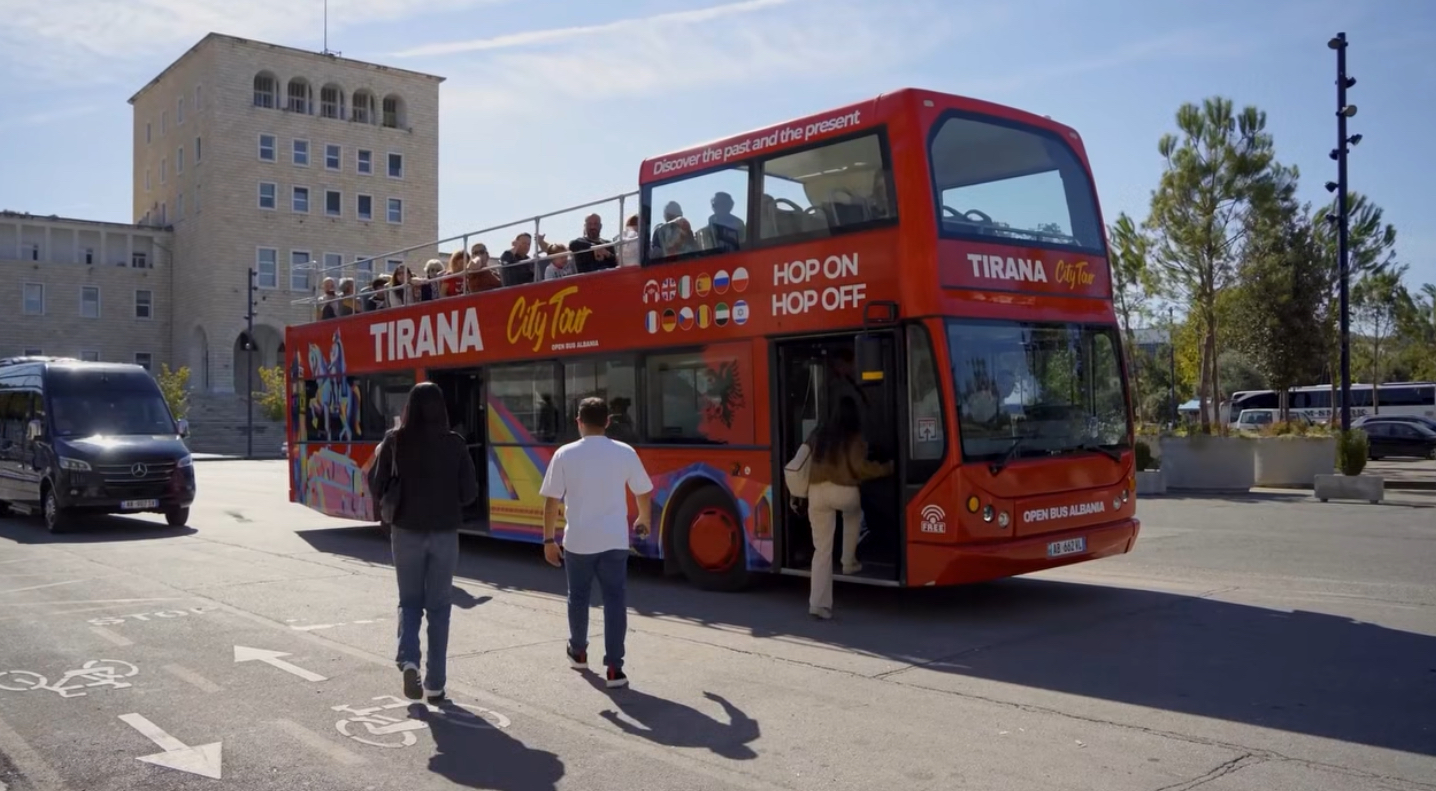 Двуетажният автобус предлага възможност за качване и слизане по различни спирки, като маршрутът включва едни от най-емблематичните места в Тирана – от площад Скандербег до музея Bunk’Art 1. Панорамната обиколка е придружена от многоезичен аудиогид.