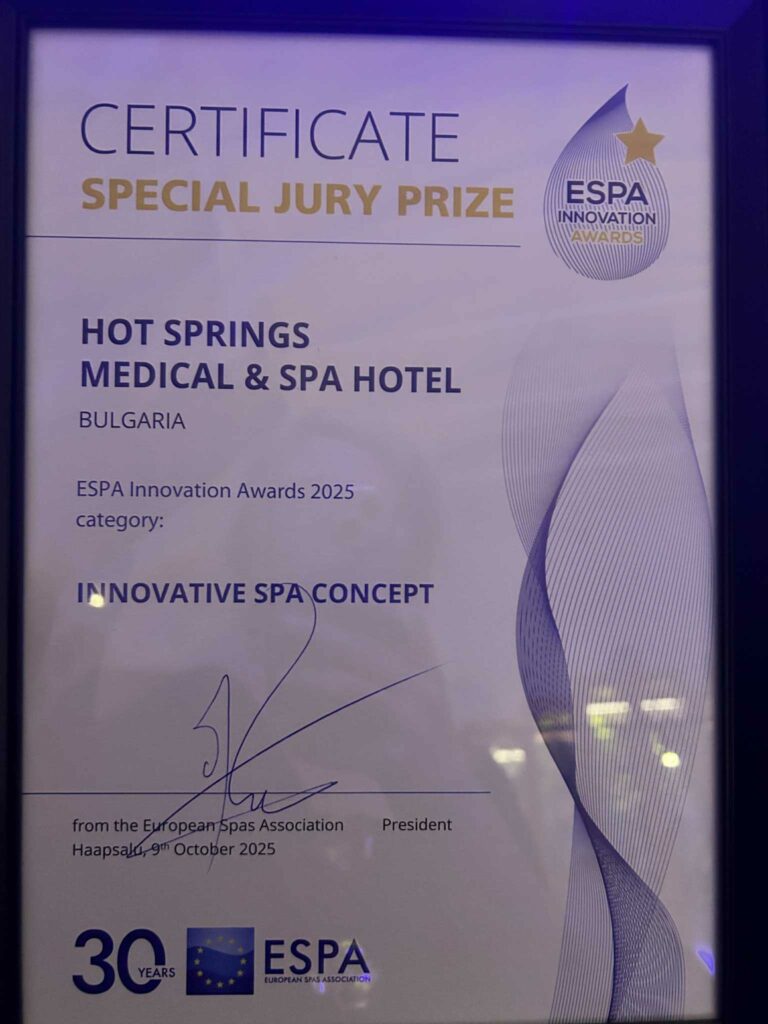 Събитието премина под мотото „Иновации в името на здравето и устойчивото развитие на СПА сектора“ и отличи най-иновативните проекти и практики в Европа в осем категории – от медицински и климатични програми до архитектура, продукти и научни изследвания.