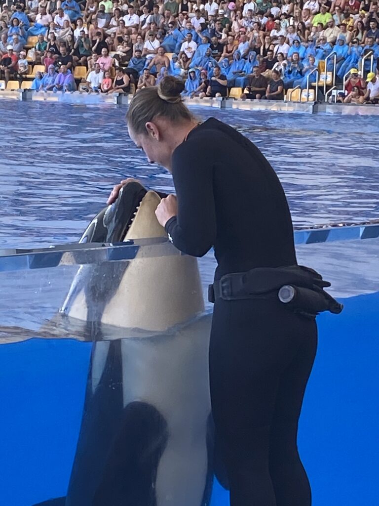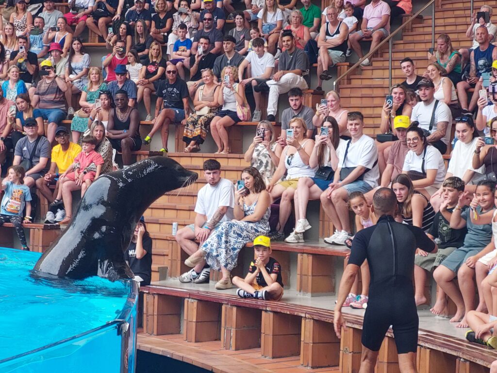 Паркът предлага впечатляващи представления за посетителите, като нашата програма започна с шоуто на огромните косатки. Арената беше пълна до краен предел, а изпълнението на тези величествени морски бозайници остави незабравимо впечатление. Косатките са най-големите представители на семейство Делфинови и са бозайниците с най-голям ареал след човека. Те са върхови хищници, които се хранят с риба, костенурки, птици, тюлени, акули и дори други китове, поставяйки се на върха на морската хранителна верига.