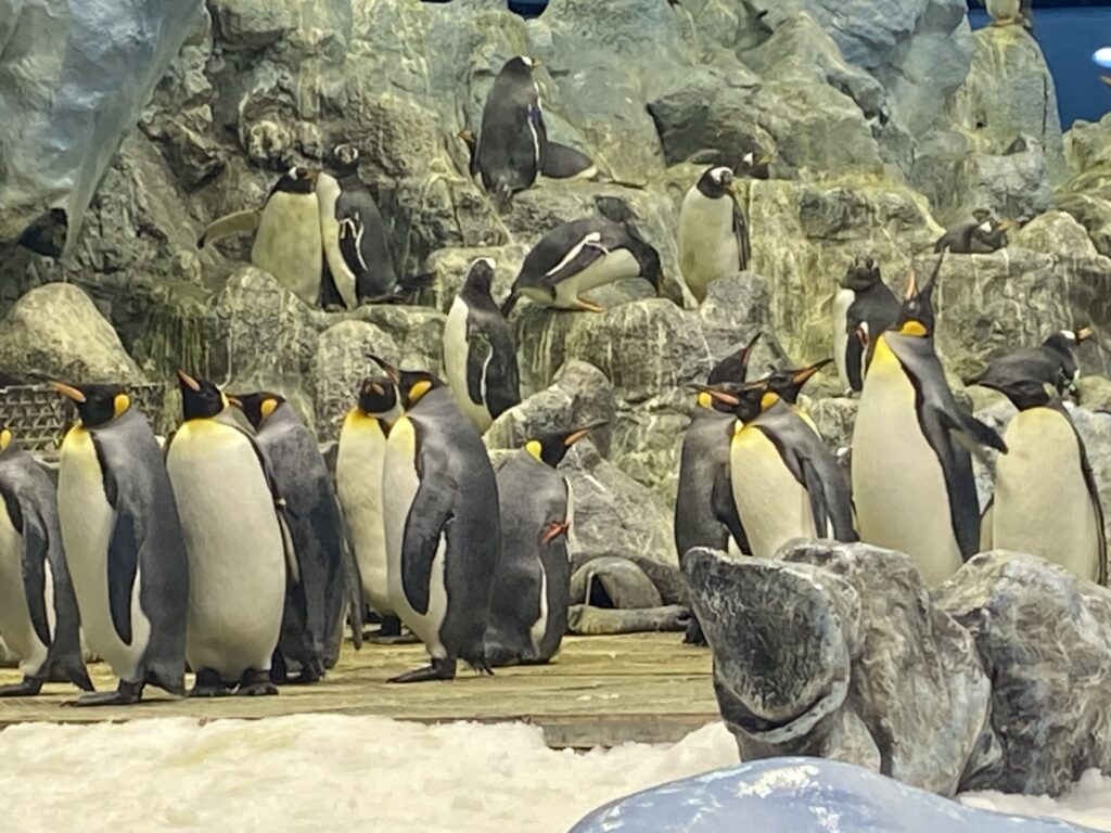 Пингвините са едни от най-обичаните обитатели на парка, които живеят в специално създадени условия, наподобяващи естествения им хабитат. Преходът през тяхното ледено царство е сред най-впечатляващите преживявания – посетителите се движат по автоматична лента пред огромен прозорец, през който могат да наблюдават пингвините как се разхождат, плуват и общуват помежду си, създавайки усещането за истинско потапяне в антарктическия им свят.