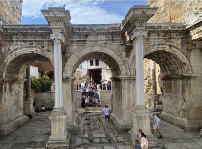 На входа на стария град е една от най-важните забележителности на Анталия – вратите на Адриан. Величествената триумфална арка е изградена в чест на посещението на римския император през 130 година.