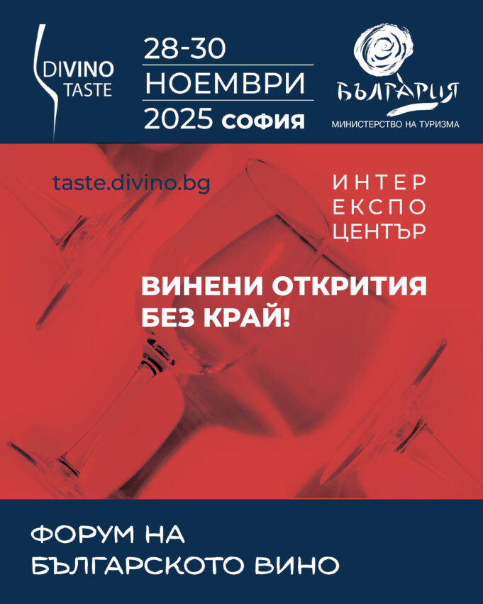 София. На 28 ноември в Интер Експо Център София, с подкрепата на Министерство на туризма, ще бъде открито 14-тото издание на DiVino.Taste – едно от водещите събития за българско вино и винен туризъм. Форумът традиционно събира десетки изби, експерти, сомелиери, представители на туристическия сектор и гости от страната и чужбина, превръщайки се в ключова платформа за развитие на винено-кулинарните маршрути в България.