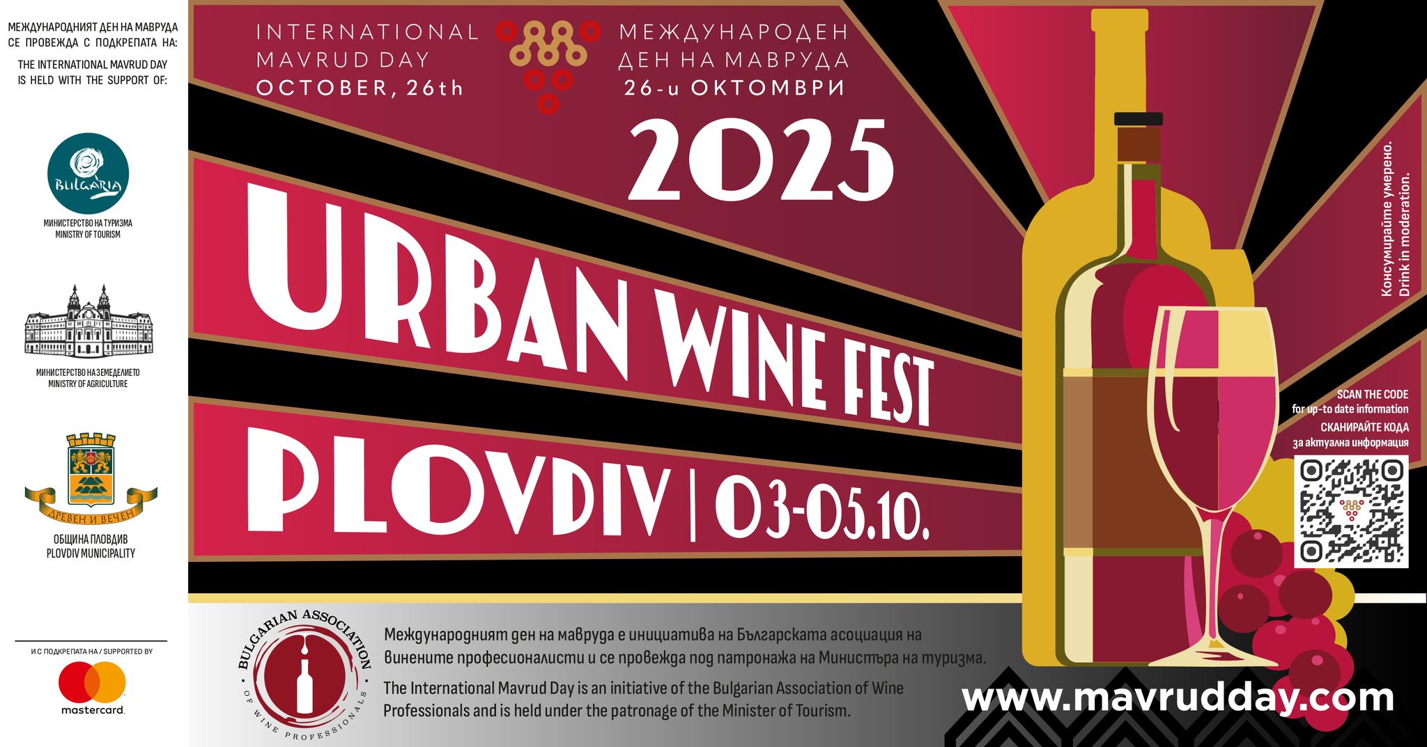 “Международният ден на мавруда” се провежда под патронажа на Министъра на туризма, с официалната подкрепа на Министерство на туризма, Министерство на земеделието и храните, Община Пловдив и Мастъркард. Събитието е част от събитийния календар на гр.Пловдив и се финансира от годишната програма за развитие на туризма в Община Пловдив за 2025 г.