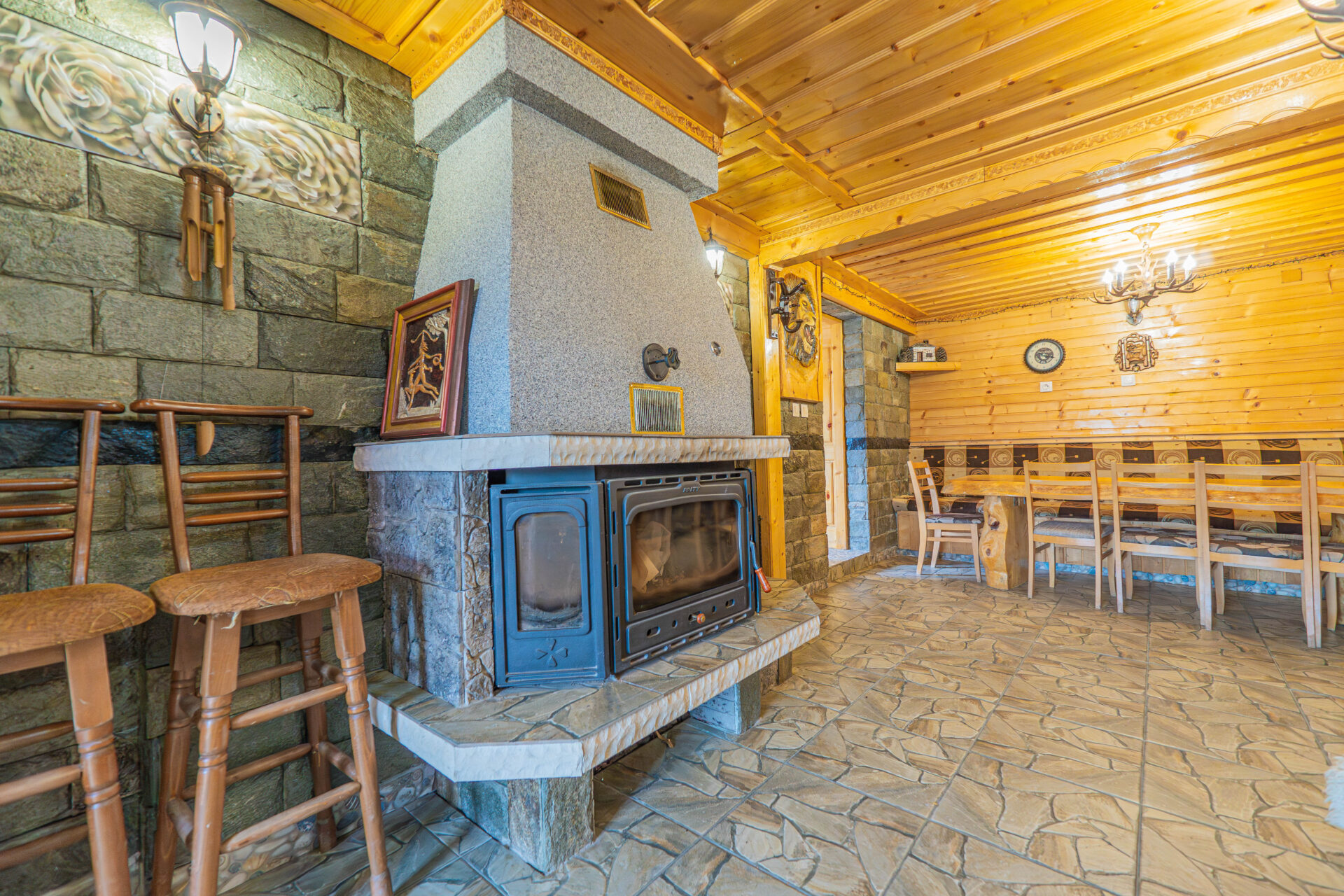 Къща за гости Веселата къща, с инфрачервена сауна и интериор в пълна хармония с природата. Шест спални, капацитет 12 гости.