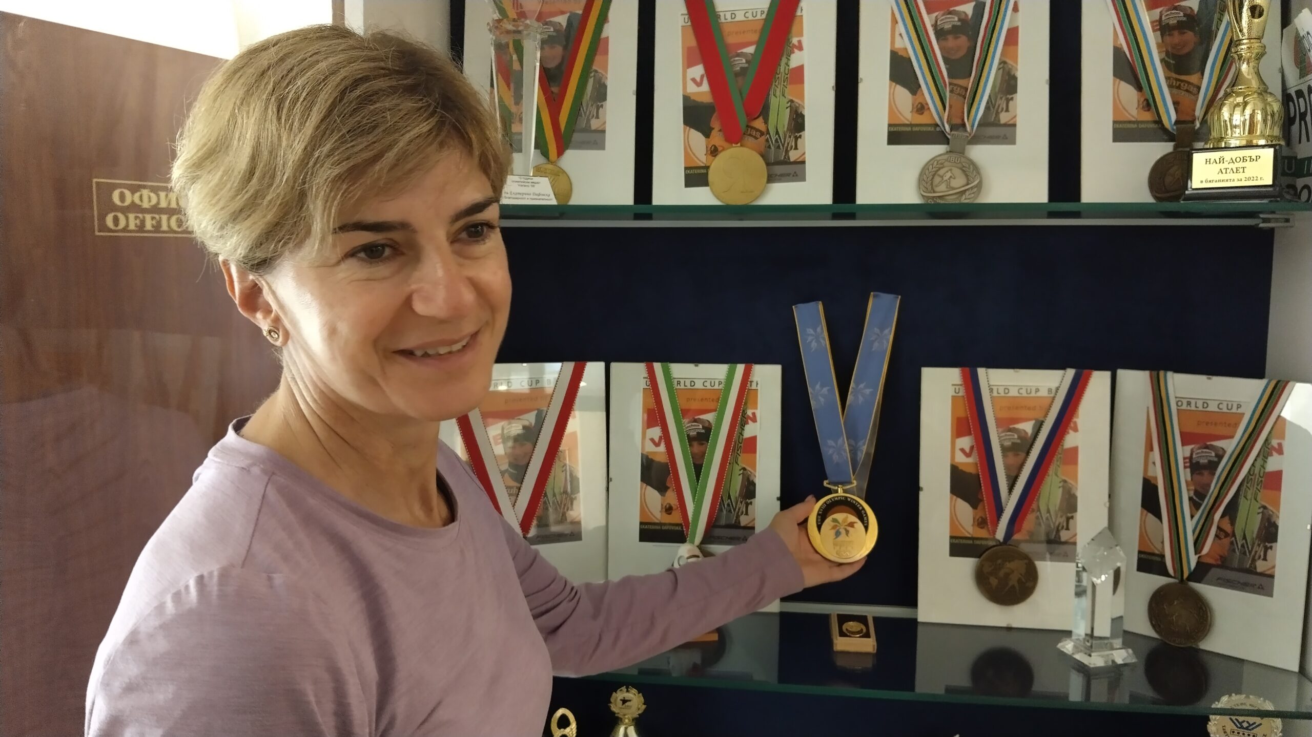 Именно във фоайето на комплекса „Дафовска“ е изложен и нейният златен олимпийски медал, спечелен на зимните игри в японския град Нагано през 1998 г.
