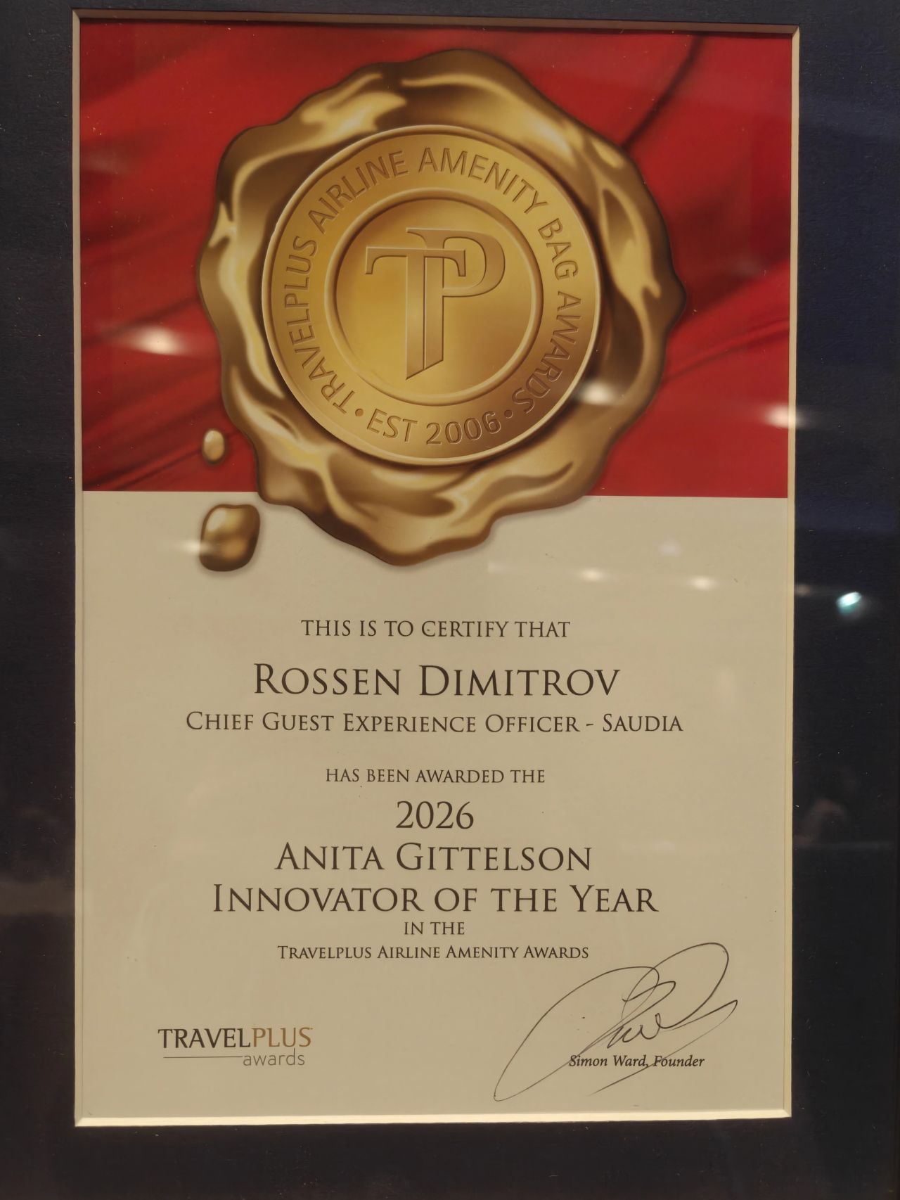 Отличието, присъдено от TravelPlus Awards, е сред най-престижните в авиационната индустрия и се връчва за изключителен принос и иновации в областта на пътническото изживяване. Българинът е сред най-големите визионери в авиацията през последните години. Припомняме ви, че той беше сред ключовите професионалисти за успеха на Qatar Airways, а сега задава новите стандарти в националния превозвач на Саудитска Арабия. В юбилейното XX издание на TravelPlus Awards т.г. Saudia беше отличена в много категории.