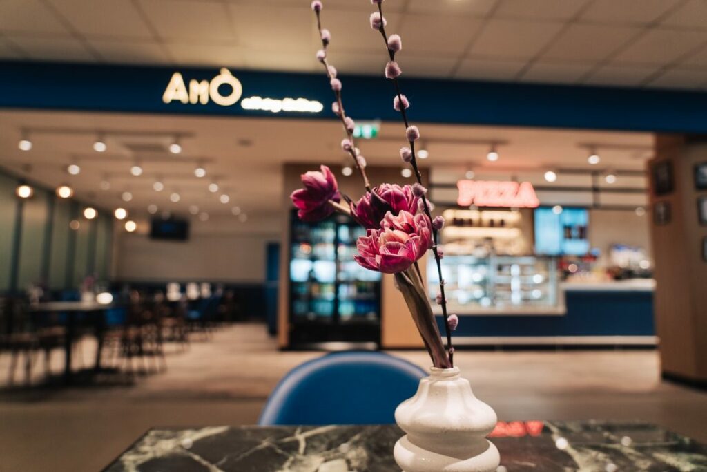 Ресторант Amo, с площ от 205 кв. м, въвежда целодневна италианска концепция за храна и напитки в терминала, като предлага прясно приготвена паста и други емблематични италиански ястия.