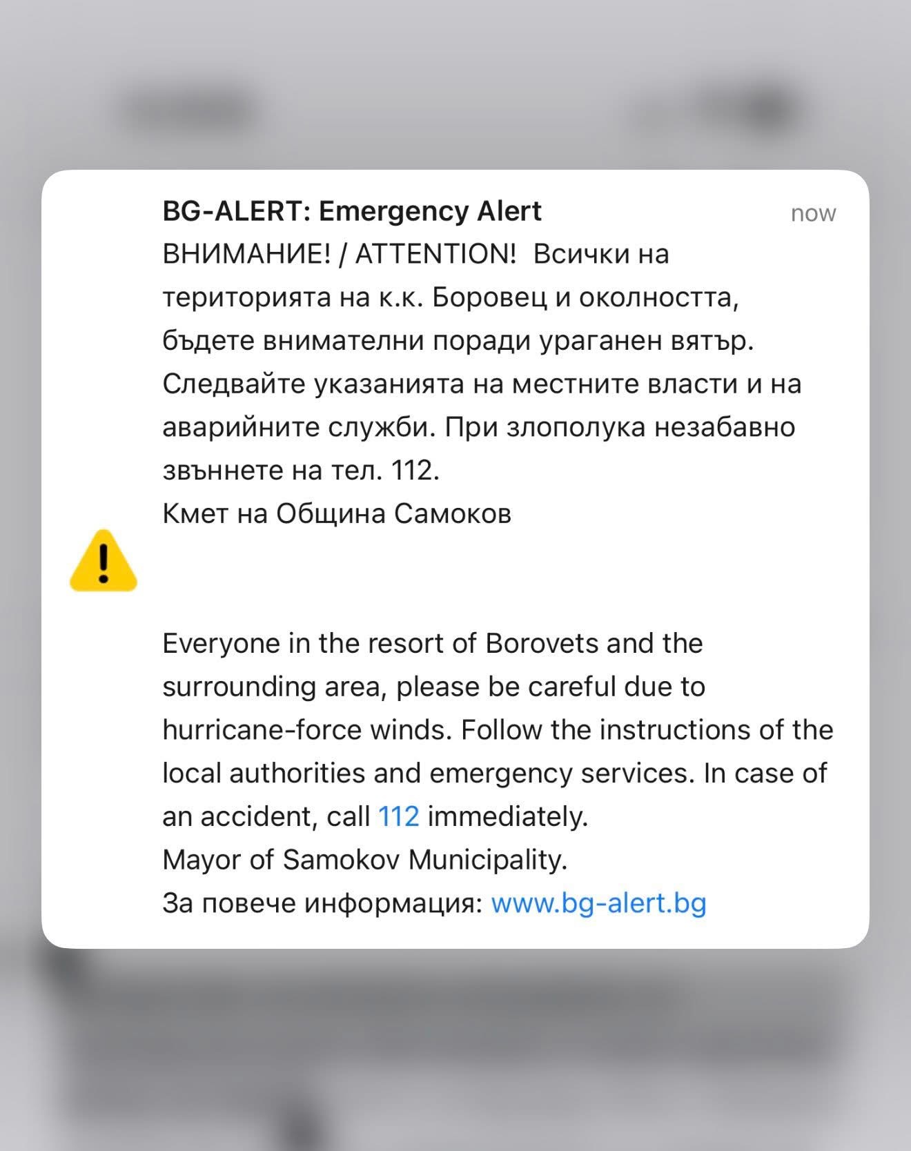 “С оглед гарантиране безопасността на посетителите и служителите, в 12:30 часа днес цялата ски зона на курорта беше затворена.