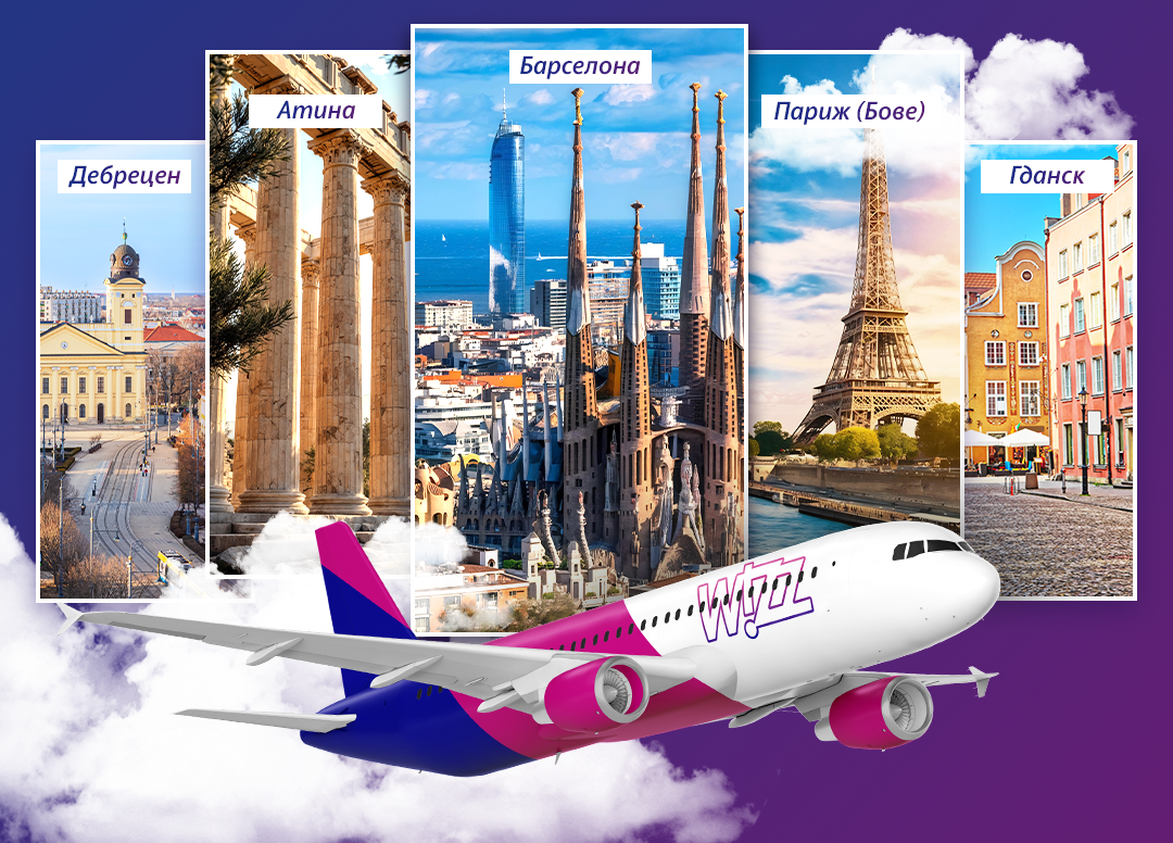 Варна. Летище Варна навлиза в летния сезон с едно от най-значимите разширявания на въздушната си мрежа в своята история! Wizz Air базира трети самолет в крайморския град и стартира пет нови директни маршрута до водещи европейски дестинации – Барселона (Испания), Атина (Гърция), Париж Бове (Франция), Дебрецен (Унгария) и Гданск (Полша), с което броят дестинации, до които авиокомпанията ще изпълнява полети от Летище Варна през Лято 2026, се увеличава до общо 23!